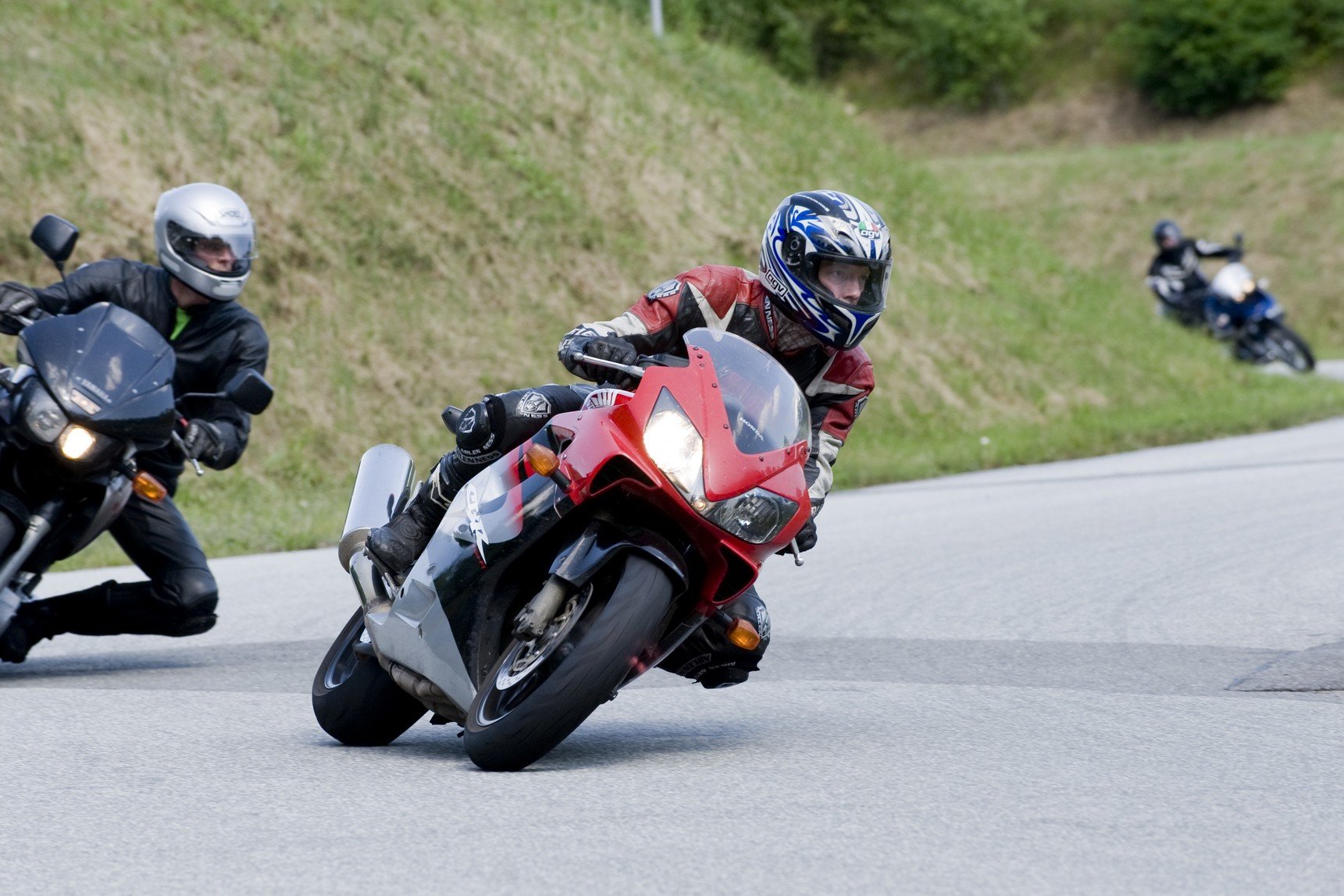 Neben den grössten Praxis-Parcours für Zweirad-Sicherheitstrainigs in Norddeutschland bieten wir auch ein spezielles Schräglagentraining und Kurventraining auf einer Rennstrecke in Geesthacht.